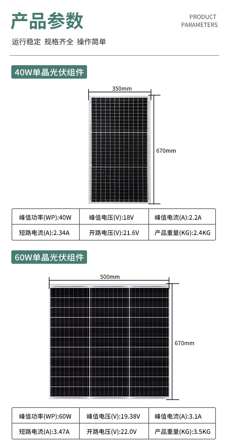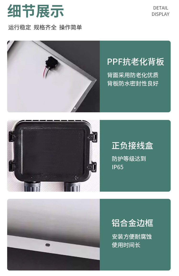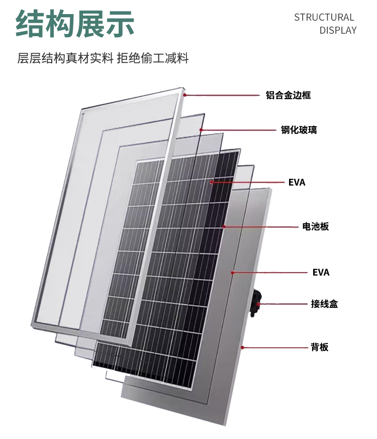 耐候性强: 采用高品质封装材料和钢化玻璃,具有优异的耐候性和抗老化性能,能够适应各种恶劣气候环境。
