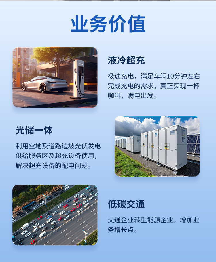 采用先进的充电模块和液冷技术,实现高达数百千瓦的充电功率,大幅缩短充电时间。