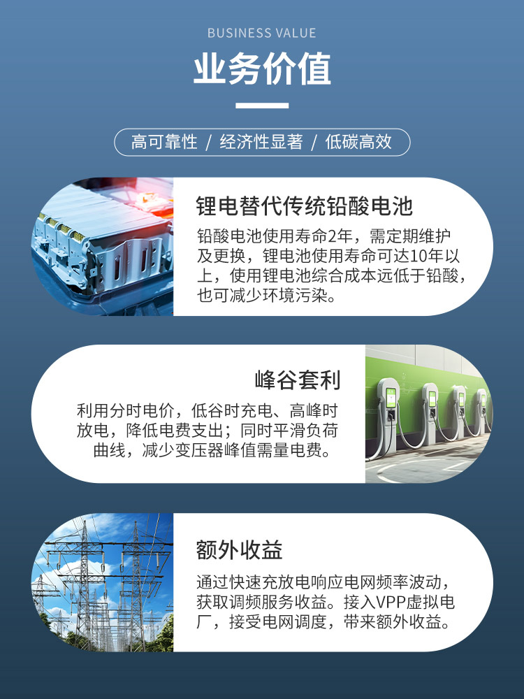 在电网故障或中断时,储能系统可以提供备用电源,确保数据中心的持续运行,最大限度地减少业务中断和数据丢失的风险。